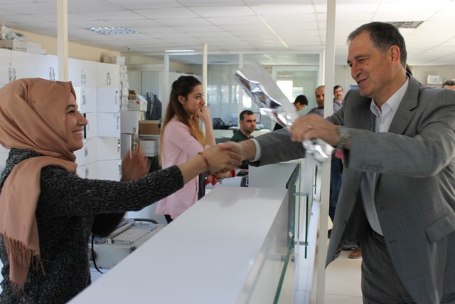 Dicle EDAŞ Mardin İl Müdürlüğü’nde de 8 Mart Dünya Kadınlar Günü nedeniyle bir kutlama gerçekleştirildi. İdari İşler Sorumlusu Ahmet Homan, şirket bünyesinde çalışan kadın personelleri tek tek odalarında ziyaret ederek, hem Dünya Kadınlar Günlerini kutladı, hem de bu gün nedeniyle hazırlanan çiçekleri verdi.