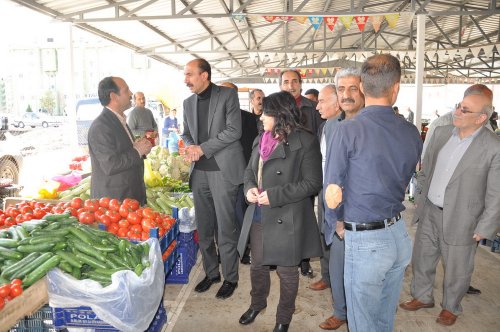 BDP Yenişehir İlçe Örgütü 30 Mart’ta yapılacak yerel seçim çalışmalarına ilişkin Üçkuyular Mahallesi TOKİ semt pazarı esnafını ziyaret etti. BDP Yenişehir Belediyesi eş başkan adayları Selim Kurbanoğlu ve Ülkü Baytaş esnafları tek tek gezerek sorunları hakkında bilgiler aldı. Semt pazarı esnafı ve halk adaylara yoğun ilgi göstermeleri dikkat çekti. Ziyaret esnasında limon satan bir esnaf adayların yanına gelerek elindeki limonu keserek, "Amed Belediyeleri 15 yıldır, BDP'nin elindedir. Burada tek parti konumundadır. Diğer siyasi partileri limon gibi sıkacağız" dedi. Semt pazarı esnafı seçimlerde her zaman olduğu gibi BDP’li adayları destekleyeceklerini söylediler.
