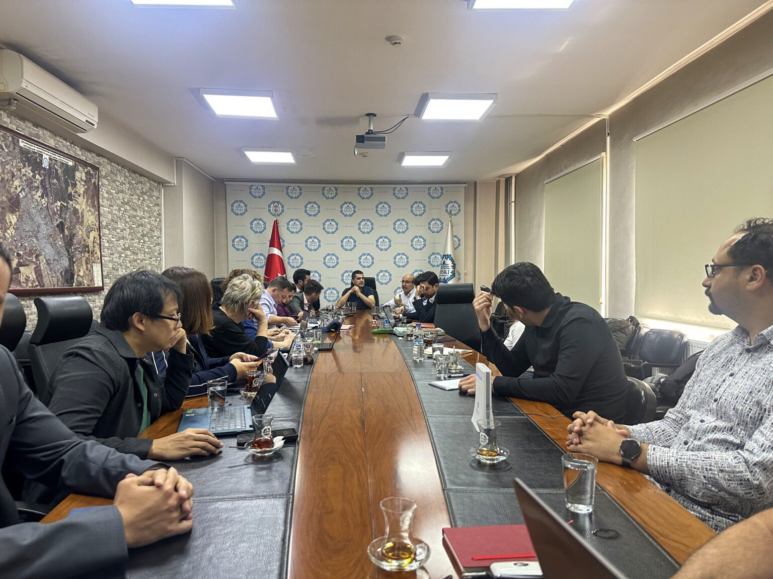 DİSKİ Genel Müdürlüğü, kentin altyapısını çağın ihtiyaçlarına uygun, güçlü ve sürdürülebilir bir yapıya kavuşturmak amacıyla yürüttüğü uluslararası iş birlikleri kapsamında önemli bir toplantıya ev sahipliği yaptı. Toplantıya DİSKİ Genel Müdürü Mehmet Şerifoğlu Projeler Dairesi ve Yatırım Dairesi Başkanı ile Asya Kalkınma Bankası (ADB) ve Türkiye merkezli kamu finans kurumu İlbank’tan oluşan 15 kişilik teknik heyet katıldı. Ocak 2025’te DİSKİ, İlbank ve uluslararası kuruluşlar arasında imzalanan protokollerle başlatılan hibe süreci kapsamında bir toplantı gerçekleştirilirdi.
