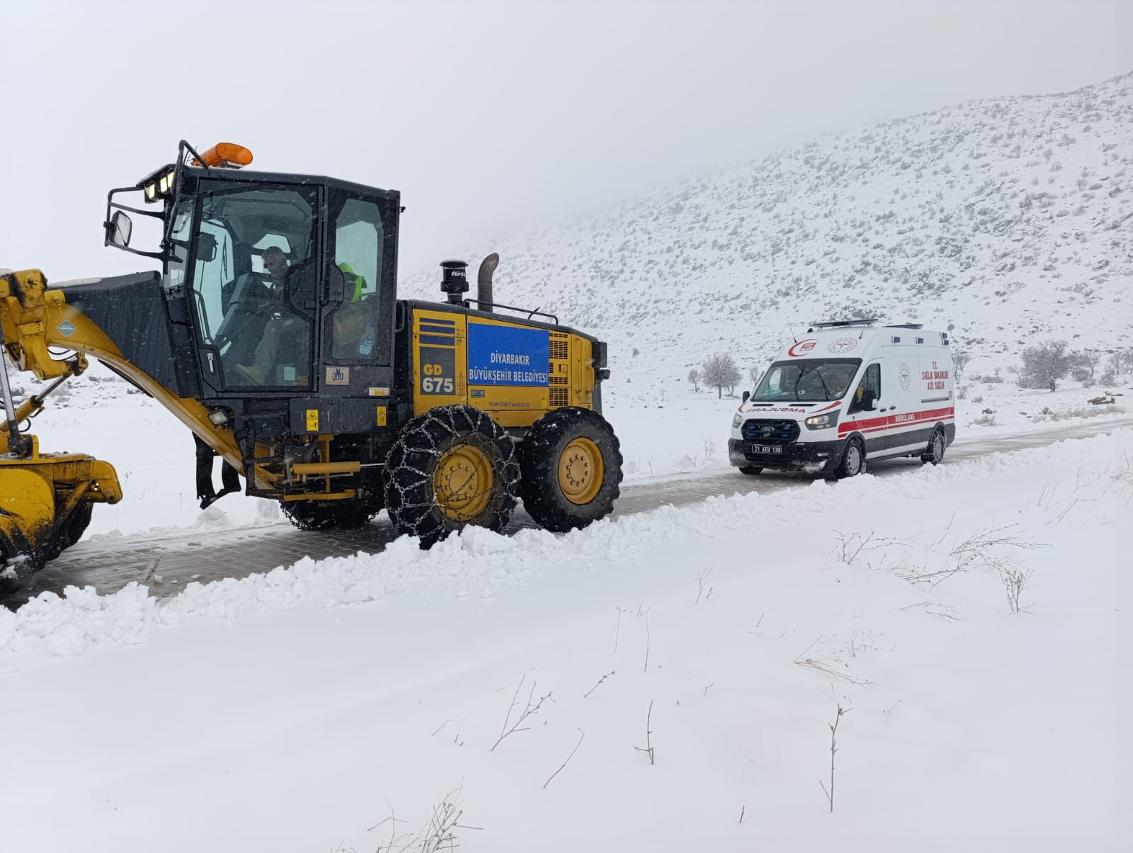 Çalışma devam ederken 112 Acil Çağrı Merkezi’ne Hani’ye bağlı Çukur ile Çınar ilçesine bağlı Çatmadal mahallerinden 2 hasta için ihbar yapılması üzerine yola çıkan ambulansın kar nedeniyle kapanan yollarda ilerleyememesi üzerine Büyükşehir Belediyesi ekipleri söz konusu yolları açmak için harekete geçti.
