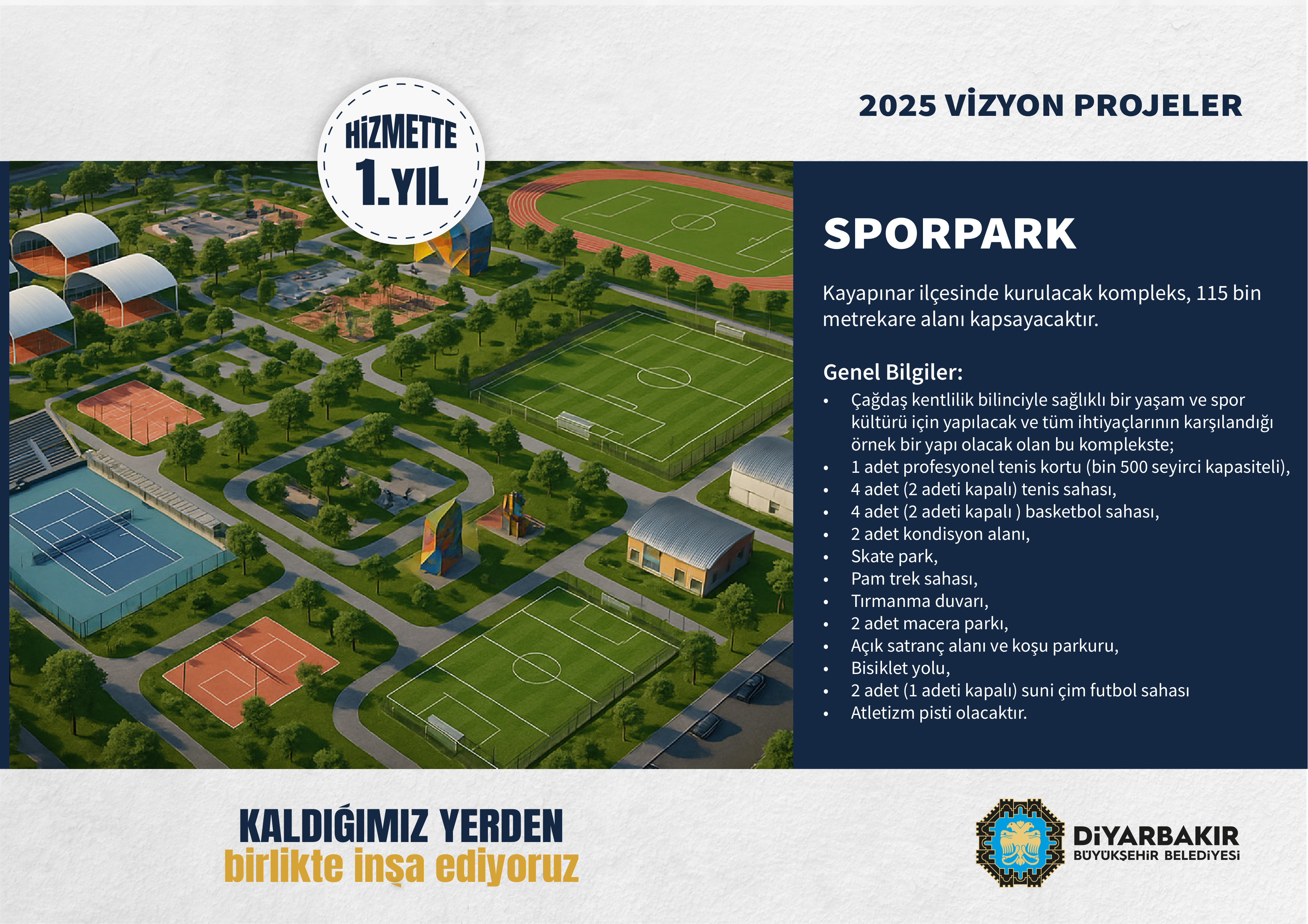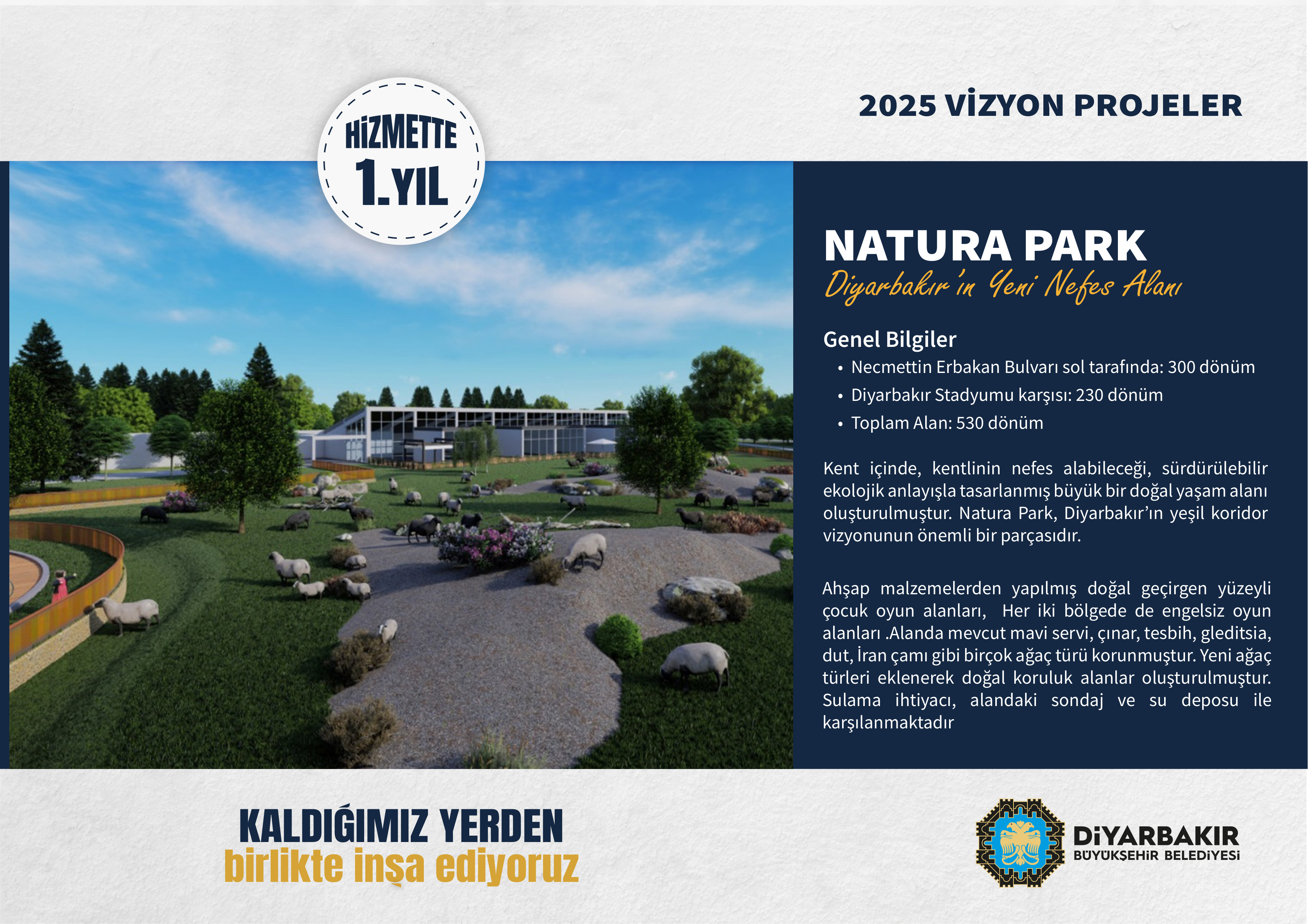 Yeni vizyon projeler arasında 530 dönümlük Natura Park, 80 dönümlük El Cezeri Bilim Merkezi ve 115 bin m²’lik Sporpark yer alıyor.