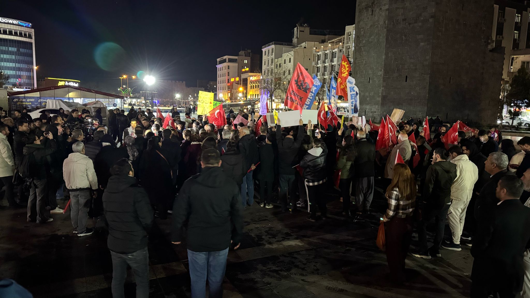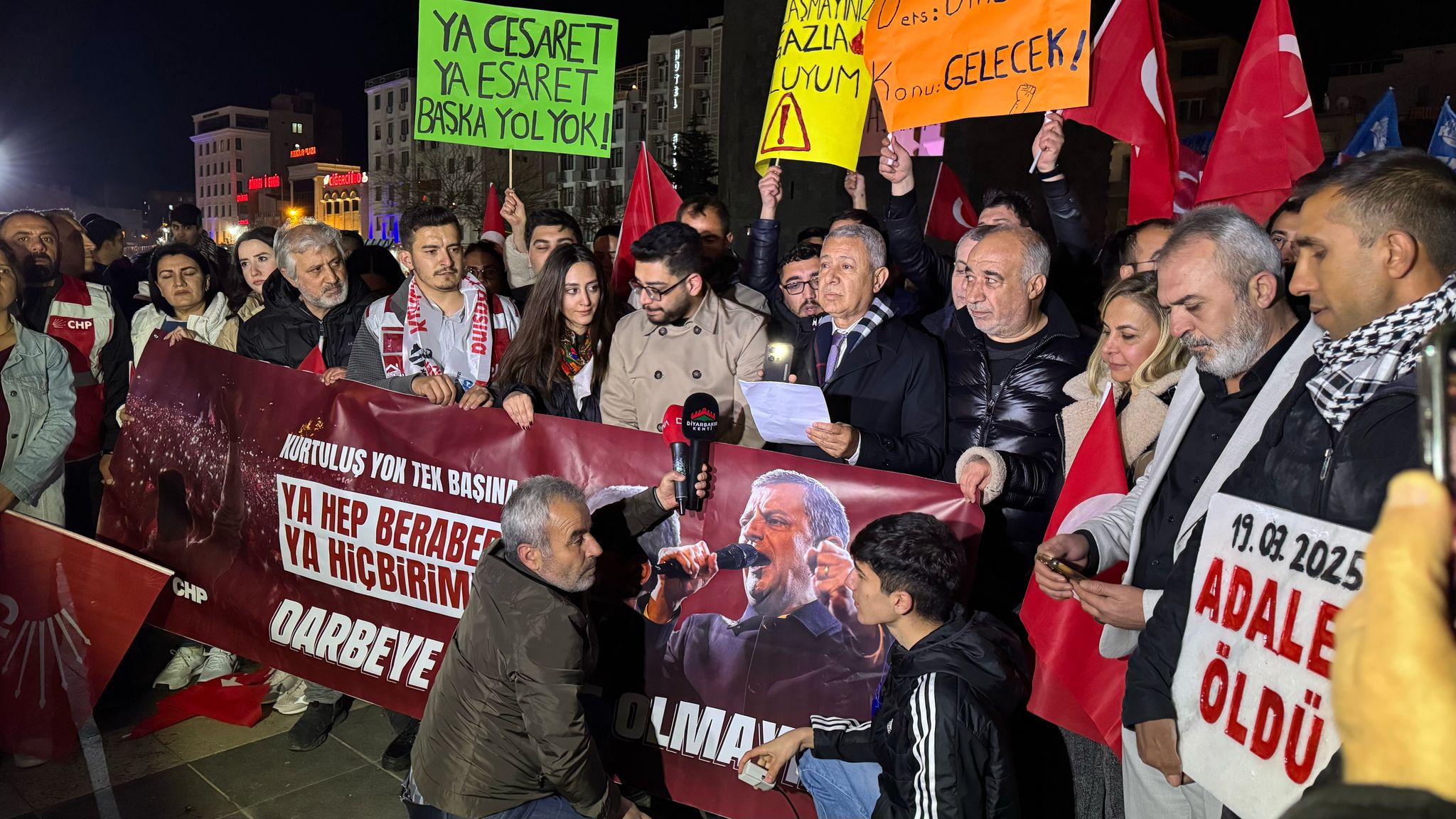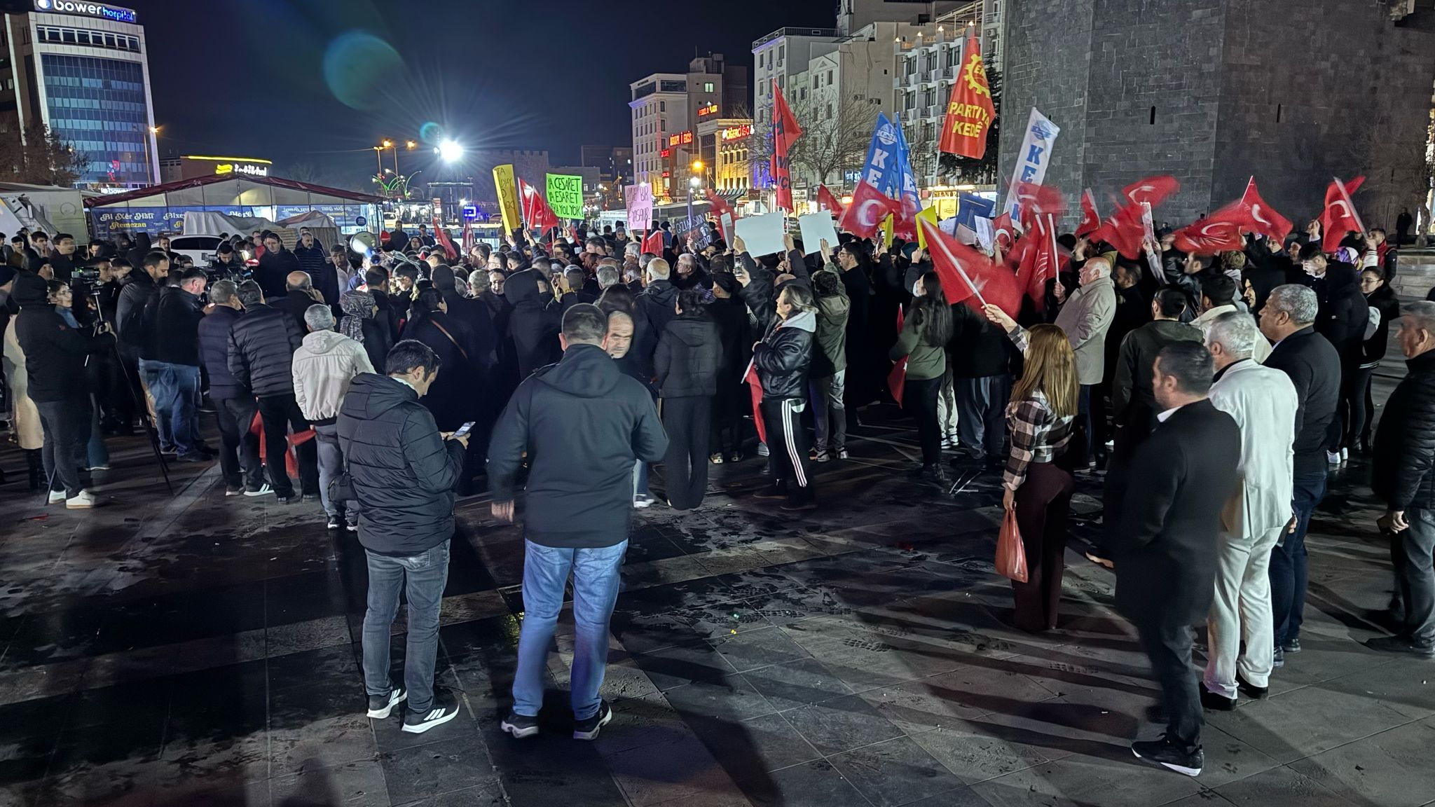 Ekrem İmamoğlu'nun adliyeye sevk edildiği saatlerde Dağkapı Meydanı'nda gerçekleşen protesto gösterilerine CHP üyelerinin yanı sıra dayanışma gösterme amacıyla birçok Diyarbakırlı da katıldı.