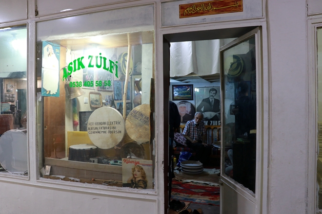 Et ve Süt Kurumundan (ESK) 1997'de emekli olmasının ardından pasajda açtığı iş yerinde arbane ve davul imalatına başlayan Yoldaş, 17 yaşından bu yana saz çalıyor.