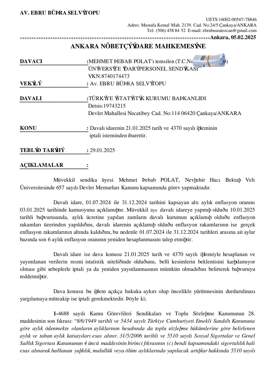 TİGRİS HABER - Üniversite İdari Personel Sendikası (ÜNİPERSEN), memur ve emeklilerin alım gücünü korumak için TÜİK’in enflasyon verilerine karşı hukuki süreç başlattı. Diyarbakır 1 No’lu Şube Başkanı Kerbela Yalçın, memurların hakkını savunmak için hukuki mücadelenin kararlılıkla sürdürüleceğini vurguladı.