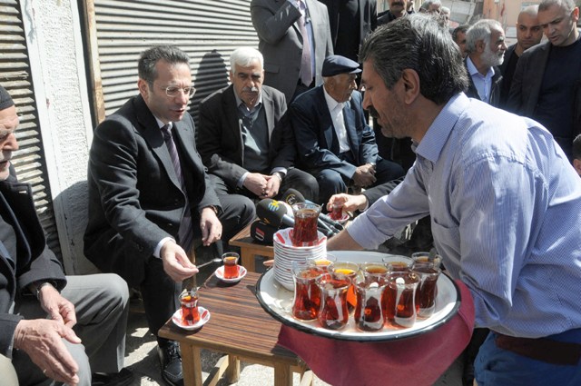 Vali Aksoy’a Diyarbakır Emniyet Müdürü Adnan Taşdan ve Sur Kaymakamı Memduh Tura’da eşlik etti. Diyarbakır Valisi Aksoy vatandaşın sorunlarını dinledi, birlikte çay içti.