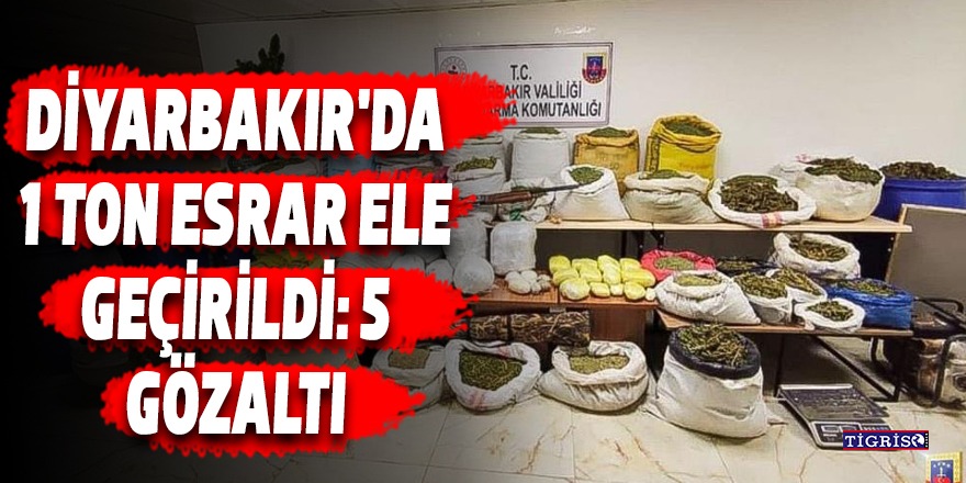 Diyarbakır İl Jandarma Komutanlığı ekipleri tarafından yapılan operasyonda 1 ton 817 kilo 500 gram esrar ele geçirilirken, olay ile ilgili 5 kişi gözaltına alındı.