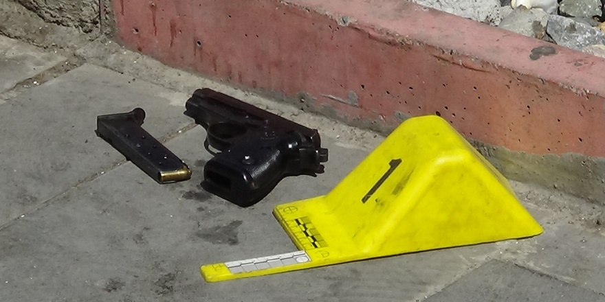 Olay yerinde inceleme yapan polis, silahı muhafaza altına alırken, olayı gerçekleştiren şüphelilerin yakalanması için geniş çaplı araştırma başlattı. (İHA)