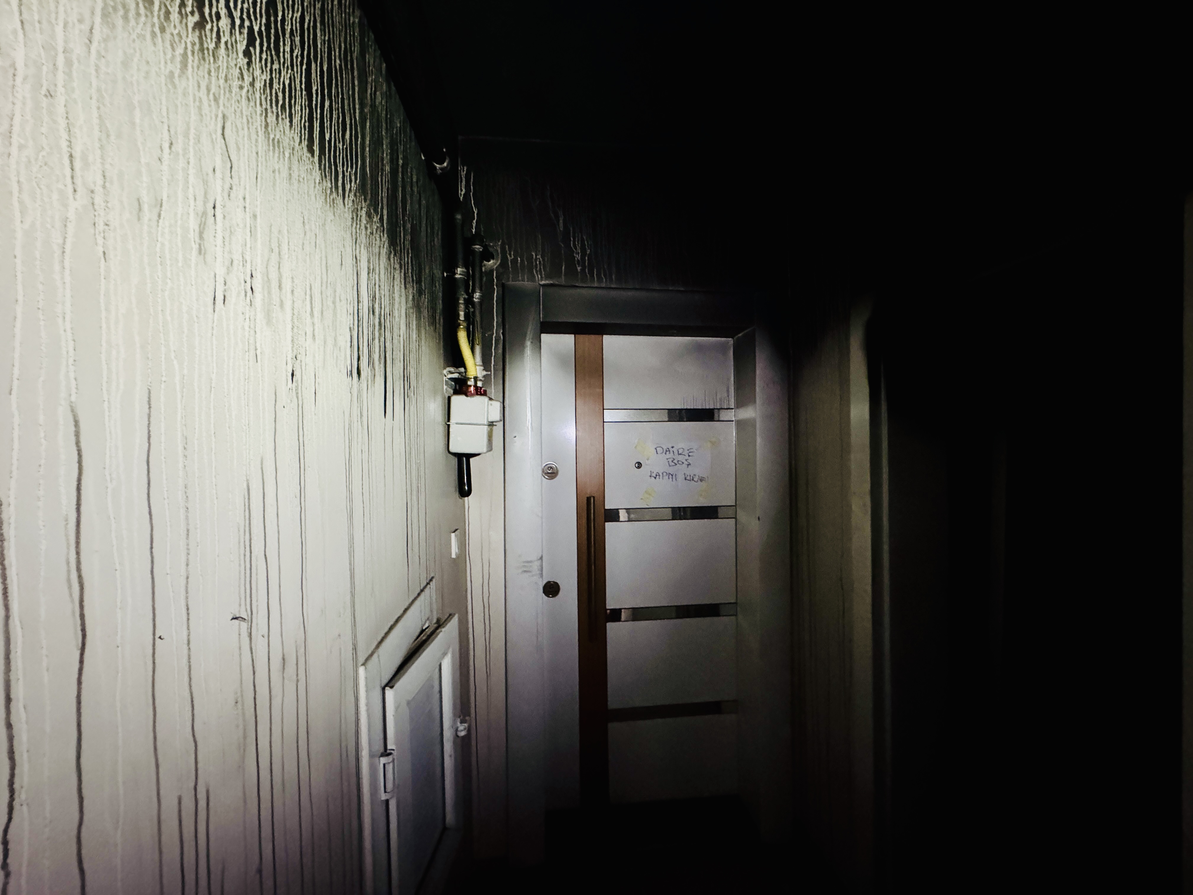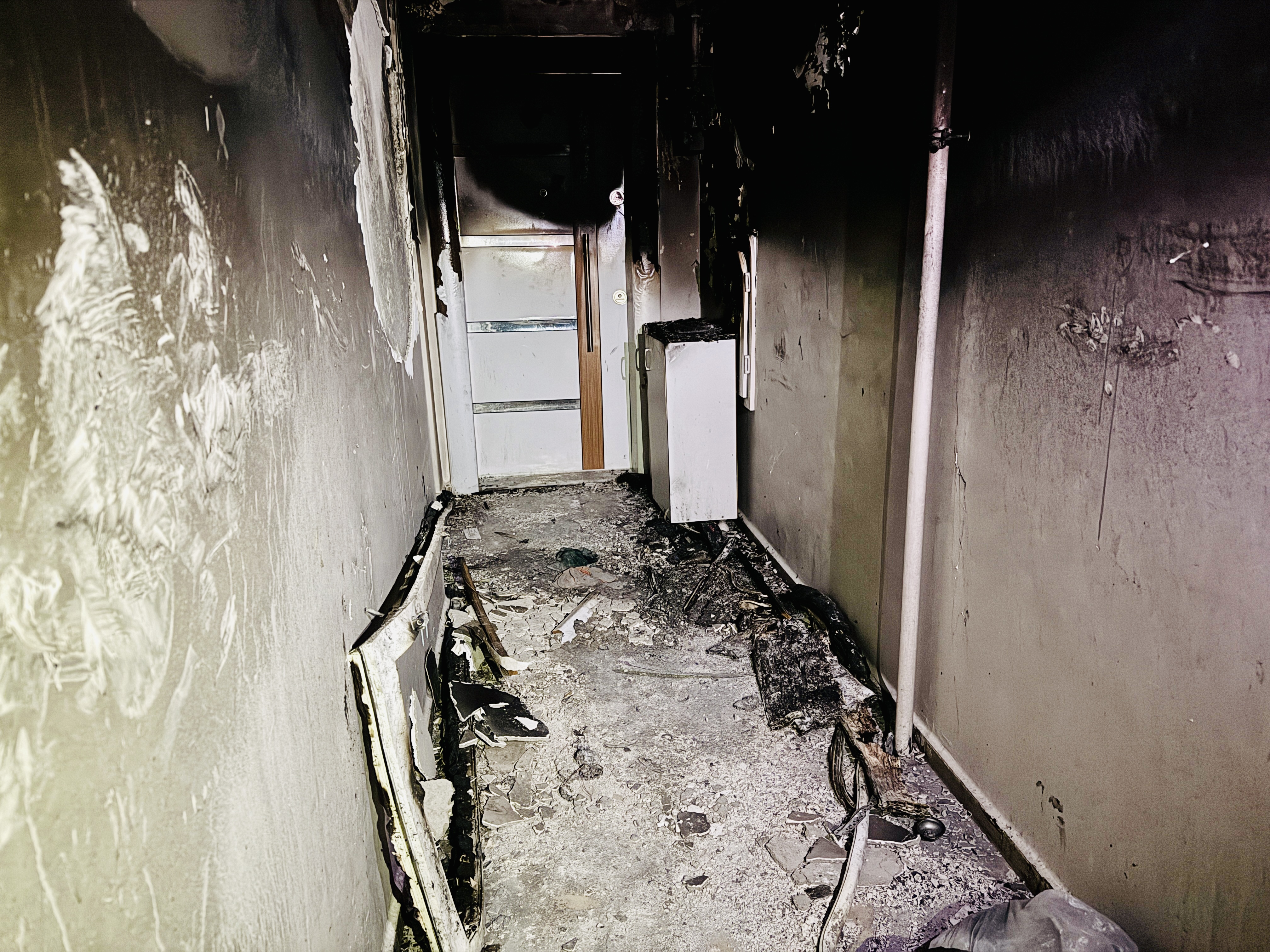 Yangının izlerini taşıyan binada koridorların tavanları, dairelerin giriş kapıları ve yerlerin is ile kaplandığı, bazı kapılarda ise "Daire boştur kapıyı kırmayınız" yazısının yer aldığı kağıtlar asıldığı görüldü.