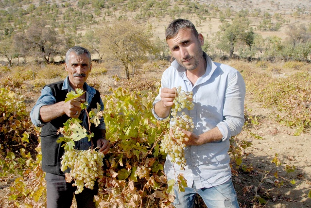 Diyarbakır’ın Hani ilçesine bağlı Çukur köyü sakinleri, ekim ayı itibari ile üzüm hasadına başladı. Bağlardan topladıkları üzümleri arazide yaptıkları derme çatma kulübelerde toplayıp suyunu çıkaran köylüler, kazanda kaynattıkları üzüm suyunu şıra haline getirdi. Buradan elde ettikleri şırayı beyaz çarşafların üzerine döken vatandaşlar, bir süre güneşte beklettikleri şıralardan daha sonra pestil elde etti. Şıralardan cevizli sucuk da yapan vatandaşlar, günde 100 adet pestil üretip 50’ye yakın cevizli sucuk yaptıklarını söyledi.
