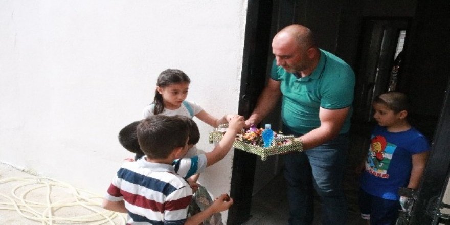 Diyarbakır’ın Bismil ilçesinde çocuklar, sokağa çıkma kısıtlaması olmasına rağmen kapı kapı dolaşıp şeker topladı.