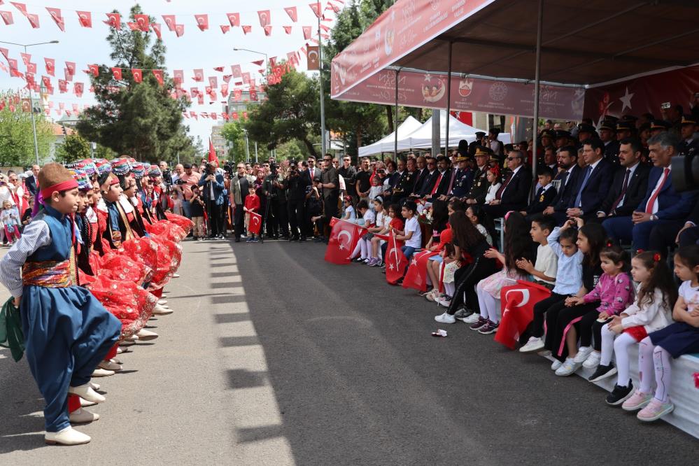 Valilik önünde yapılan kutlamalarda, saygı duruşu ve İstiklal Marşı’nın okunmasının ardından İl Milli Eğitim Müdürü Murat Küçükali, yaptığı konuşmada, tarih boyunca hiçbir esareti kabul etmemiş Türk’ü, Kürdü, Laz’ı, Çerkez’i, Zaza’sı, Tatar’ı Arabı, Türkmen’i bir araya gelip bir olmuş ‘Egemenlik kayıtsız şartsız milletindir’ diyerek 23 Nisan 1920’de Türkiye Büyük Millet Meclisini açtığını, bağımsızlığımızın ve milli iradenin hakimiyetini dünyaya ilan ettiğini söyledi.