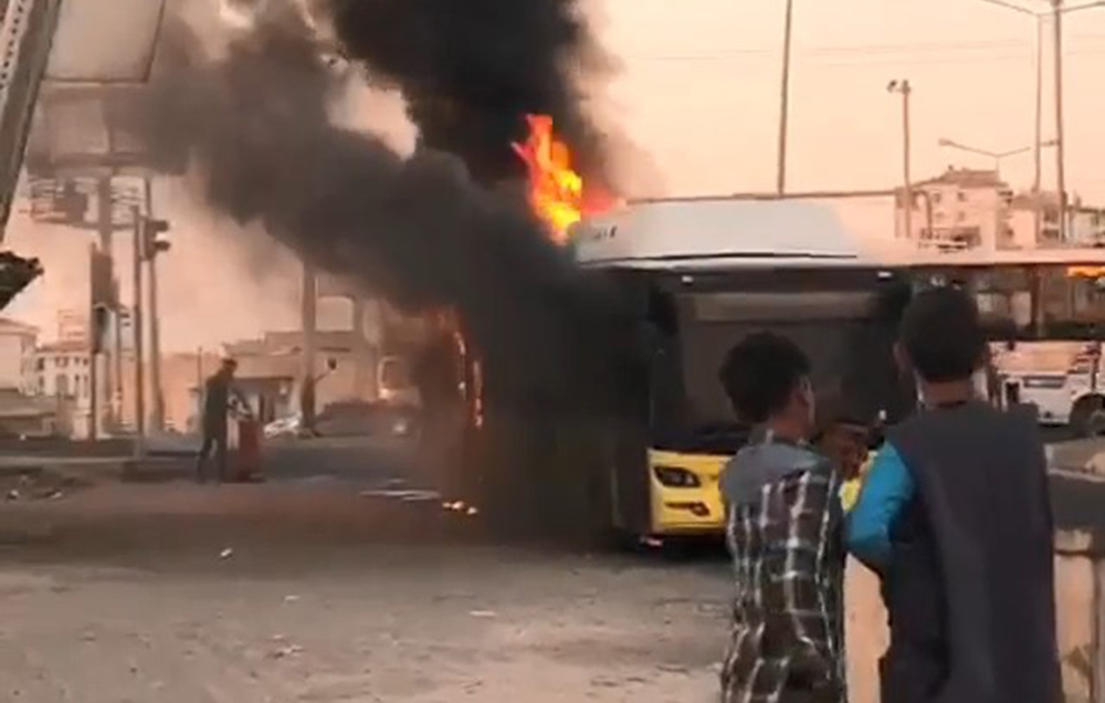 Otobüs alev alev yandı