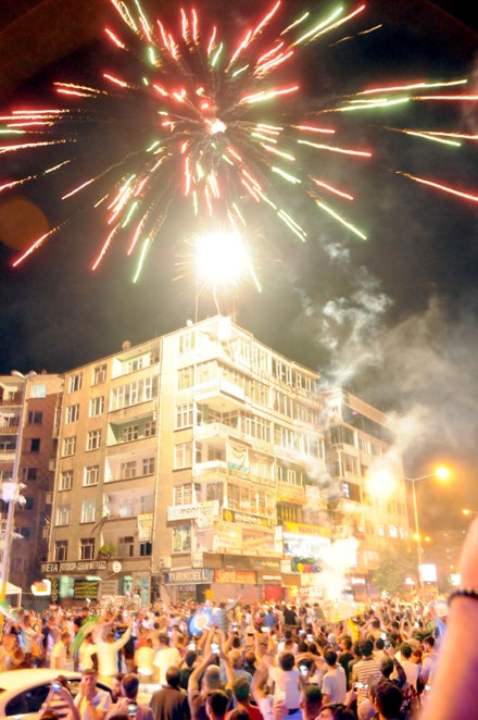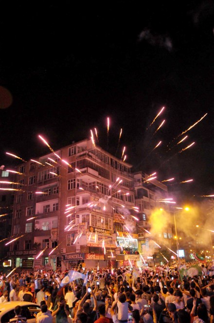 Diyarbakır'da kutlamalar HDP'nin önünde yapılırken, konvoy oluşturan partililer kent merkezinde kutlama turları attı. Kutlamalar sırasında havai fişekler patlatılırken, parti bayrakları ile kutlamalar kentin birçok noktasında devam gece boyunca devam etti. (DHA)
