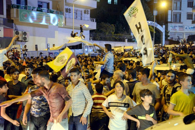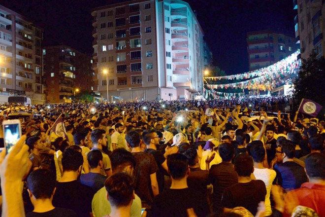 HDP'nin yüzde 10 barajının geçtiğinin televizyonlarda yayımlanması ile birlikte Diyarbakır başta olmak üzere Güneydoğu'daki birçok merkezde, partililer sokağa döküldü.
