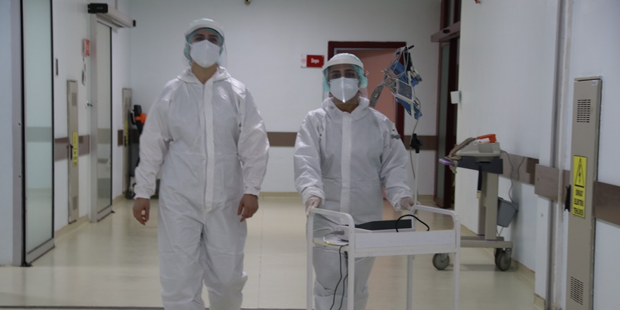 Diyarbakır Gazi Yaşargil Eğitim ve Araştırma Hastanesinde Kovid-19 hastalarının tedavi gördüğü serviste ve yoğun bakımda görev yapan kadın doktor, hemşire ve hasta bakıcılar, salgının ilk gününden bu yana Kovid-19 hastalarının sağlığına kavuşması için mücadele veriyor.
