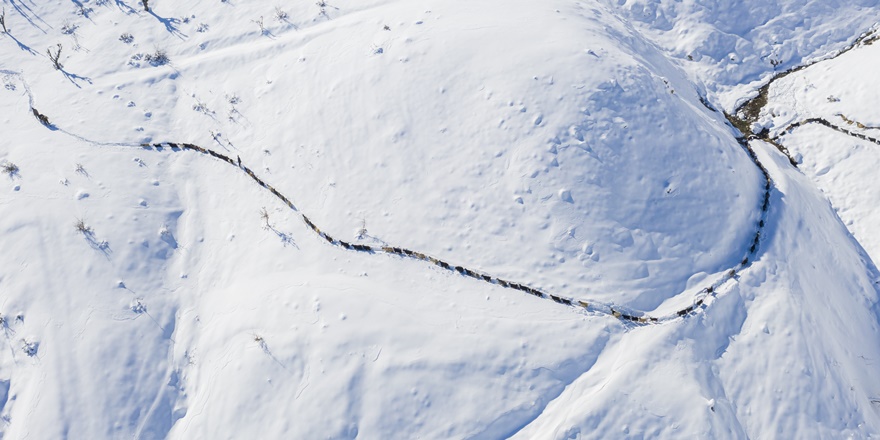 Kulp ilçe merkezine 30 kilometre uzaklıkta bulunan Yuvacık köyü yakınındaki 2 bin 800 rakımlı Tosun Tepe yaylalarında keçi sürüsü drone ile görüntülendi. Karlı dağların yamaçlarını kullanarak dönüş yoluna geçen sürüdeki keçilerin tek sıra ilerleyişi görsel şölen oluşturdu. (Foto: Bestami Bodruk-AA)