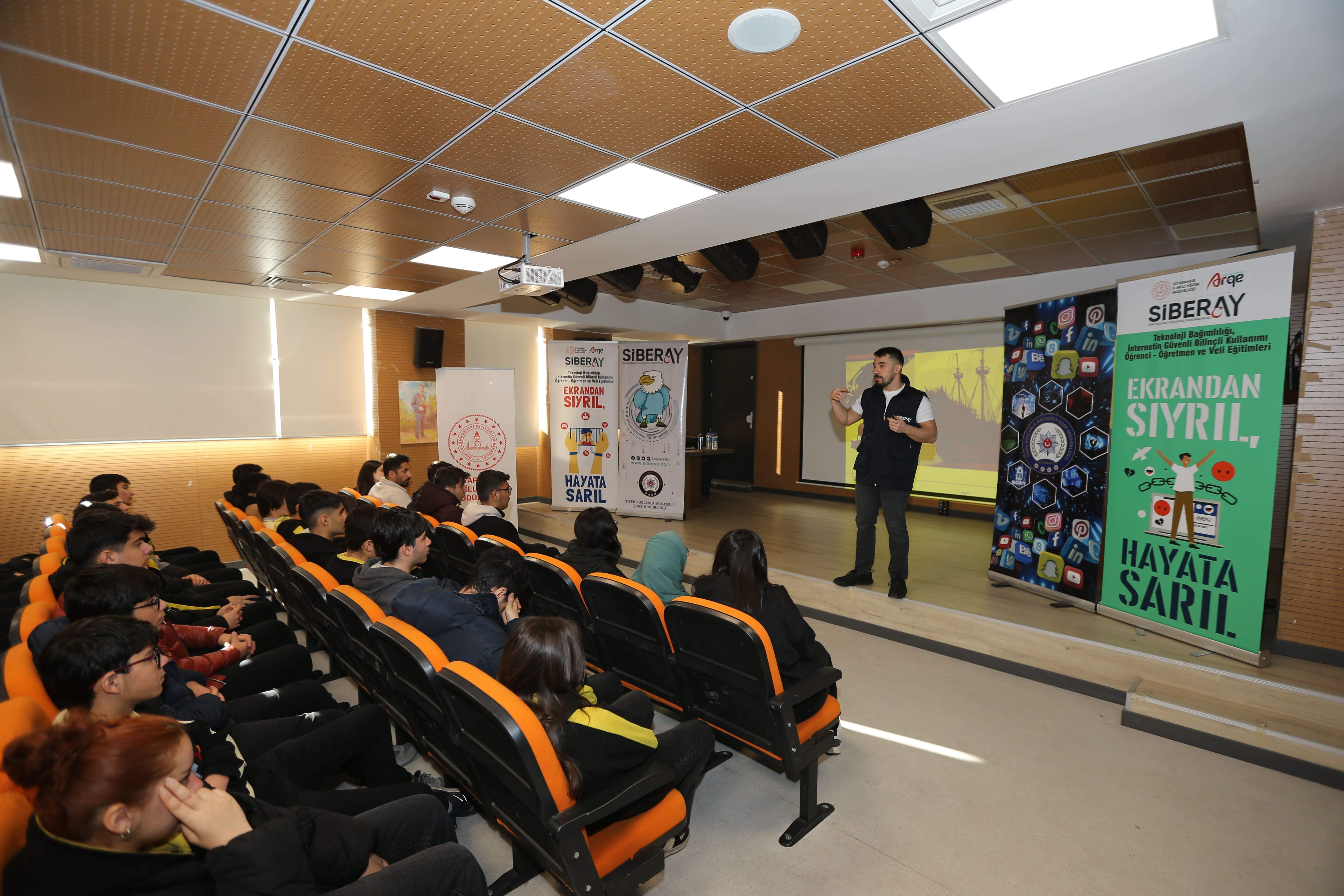 Teknoloji bağımlılığının birey ve toplum üzerindeki etkileri, siber tehditlere karşı alınabilecek önlemler ve internetin bilinçli kullanımı konusunda verilen eğitimlerle öğrenciler bilinçlendiriliyor.