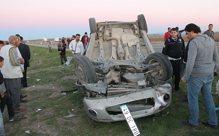 DİYARBAKIR -İsmail Bağtur (22) yönetimdeki 49 DC 180 plakalı otomobil, Bismil çıkışında yoldan çıkarak şarampole devrildi. Kazada, araç sürücüsü Bağtur ile yanında bulunan Kadri Bulut (17), İsrafil Karabulut (21), Recep Bulut (20) ile Mahmut Kabul (18) yaralandı.
