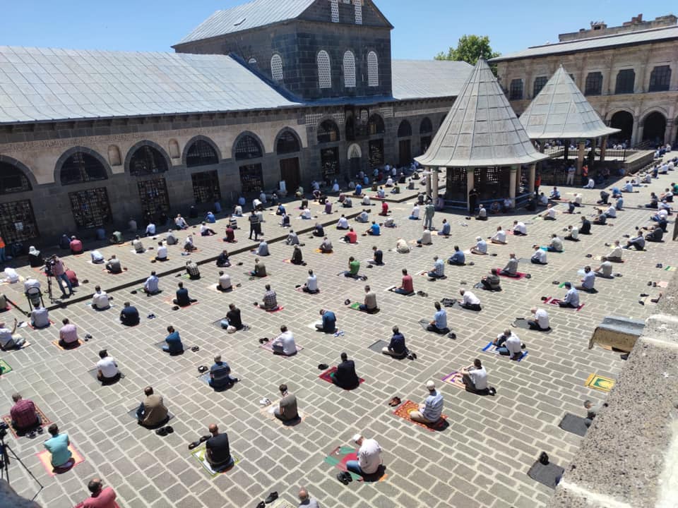 Diyarbakırlı vatandaşlar, Kovid-19 salgını nedeniyle belirlenen yeni kurallar çerçevesinde Cuma namazını eda etti.