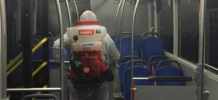 Ambulans, polis, jandarma ile kamu kurumlarına ait hizmet araçları ve özel sektöre ait hatlı minibüsler, ticari taksiler, personel servislerinin de Büyükşehir Belediyesi Ulaşım Daire Başkanlığı Otobüs İşletme Şube Müdürlüğünde ücretsiz dezenfekte işlemleri uygulanırken, kenttin belirli noktalarında bulunan klimalı ve açık duraklar da ekipler tarafından her gün dezenfekte ediliyor.