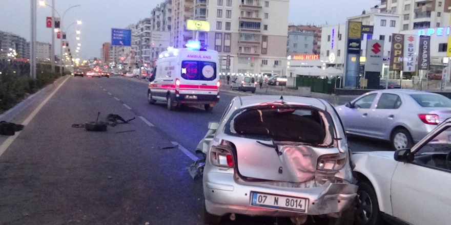Kaza, Diyarbakır-Şanlıurfa karayolu 3. kilometrede meydana geldi. İddiaya göre, plakası belli olmayan bir otomobil kadın sürücünün kullandığı 07 N 8014 plakalı otomobili yolda sıkıştırdı. İsmi öğrenilemeyen kadın sürücü direksiyon hakimiyetini kaybederek refüjdeki direğe çarparak yola savruldu. Bu sırada yolda seyir halinde olan 21 DF 454 otomobil de kaza yapan otomobile arkadan çarptı. Kazada kadın sürücü ağır yaralanırken yanındaki çocuk ise hafif yaralandı. Yoldan geçen sürücülerin durumu bildirmesi üzerine olay yerine çok sayıda ambulans ve polis ekipleri sevk edildi. Sağlık ekipleri yaralılara yaptığı ilk müdahalenin ardından çevredeki özel hastaneye kaldırdı. Çevrede inceleme yapan polisler gidiş ve geliş olarak bölünen karayolunun tek şeridini bir süreliğine kapatarak kontrollü olarak araç geçişini sağladı. Polis, kazaya karışan otomobilleri bölgeye çağırdıkları çekicilerle kaldırdı. Kaza yerinin temizlenmesinin ardından yol trafiğe tekrardan açıldı.