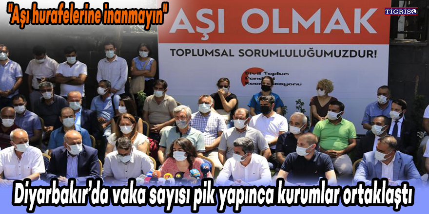Diyarbakır Ticaret ve Sanayi Odası bahçesinde yapılan ortak açıklamaya, kentteki siyasi parti temsilcileri ve sivil toplum kuruluşlarının temsilcileri hazır bulundu. Diyarbakır Tabip Odası Başkanı Dr. Elif Turan, gelinen aşamada salgını kontrol altına almak, pandemi ile mücadelede başarılı olmak için önemli bir fırsat yakalandığını, en kritik toplumsal korunma önleminin aşı olduğu bilimsel verilerle ortaya konulduğunu söyledi. Turan, konuşmasını şöyle sürdürdü:
