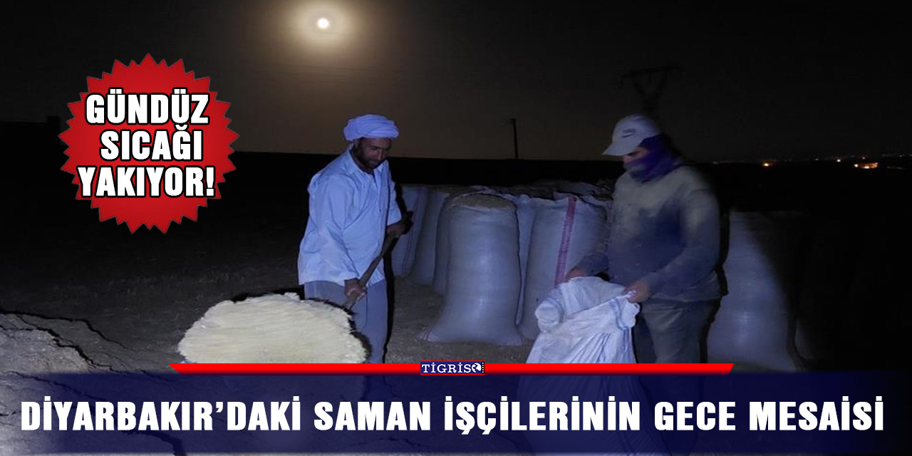 TİGRİS HABER - Akşam saatlerinde Şanlıurfa'nın Siverek ilçesinden yola çıkan saman işçileri, ailelerinin geçimine katkı sağlamak için Diyarbakır'da saman yükleme işi yapıyor. Diyarbakır'da yaz aylarının bunaltıcı sıcak havalarından korunmak için gece zifiri karanlıkta ay ışığında çalışan işçiler, sıcak havada bu işi yapmanın 2 kat daha zor olduğunu, bu nedenle gece saatlerinde ayın ışıltısı ve el fenerleri yardımıyla gündüz sıcağına nazaran gece serinliğinde daha rahat çalıştıklarını ifade ettiler.
