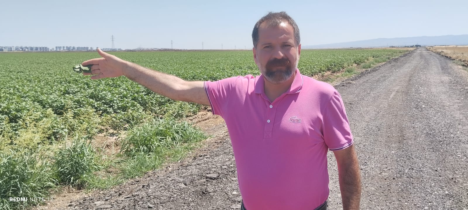 Tigris Haber'e konuşan Yenişehir Ziraat Odası Başkanı Süleyman İskenderoğlu, bozuk olan 3 kilometrelik yolu ve pamuk yapraklarında oluşan kırmızı örümcek hastalığını uygulamalı olarak gösterdi. TPAO'nun geçen yıl petrol bulduğu kuyudan kısa süre içerisinde ham petrolü taşımaya başladığını anlatan İskenderoğlu,