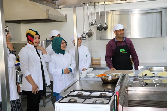 Aşçılık kursu eğitmeni Mürsel Bakır, kursa ilginin yoğun olduğunu söyledi. Kursiyerlerin öğrenmeye yönelik açlığının olduğunu belirten Bakır, "Bununla ilgili arkadaşları tespit ederken, biliyorsunuz kadınlarımız dezavantajlı bir grup, çalışma olanakları biraz daha az. Bu dezavantajı avantaja çevirmek anlamında arkadaşlarımızı çağırdık ve burada ilk önce temel mutfak kurallarını gösterdik. Teori derslerimizi verdik ve ardından pratiklere geçtik. Şimdiden çalışmak isteyen arkadaşlarımızın hepsinin işi hazır. Kalifiyeli işçiye çok ihtiyaç var. Boynuz kulağı geçiyor, bunu öğrencilerimden birinde gördük. Şu anda bir bayan arkadaş, Diyarbakır’ın en güzel otellerinden birinde mutfak şefliği yapıyor. Dolgun da bir maaş alıyor, hayatını idame ettirebiliyor, ayaklarının üzerinde durabiliyor. Birçok erkek arkadaşımız onun yanında çalışıp onun bilgilerinden faydalanıyor. Bu mesleğin kadını erkeği yoktur, kadın olmanın avantajı vardır, kadınlar biraz daha detaycıdır" dedi.