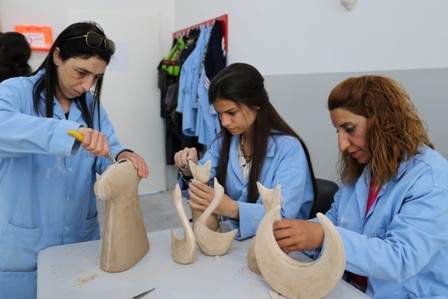 Kalkınma Bakanlığı ve Diyarbakır Valiliği tarafından desteklenen, AB tarafından kabul edilen Düşten Gülüşe Mutlu Bir Hayata İlk Adım projesi kapsamında açılan kurslar başladı. Bölgedeki kadınları iş hayatına yönlendirmeyi amaçlayan proje sayesinde açılan seramik işlemeciliği kursuna şu ana kadar 20 kadın başvurdu. Evde boş vakit geçirmek ve erken yaşta evlilikle karşılaşmak istemeyen kızların da katıldığı kursta kadınlar, seramik işlemeciliğinin her anında bulunuyor. Kil ve toprakları çuvallardan taşıyan kadınlar, suyla harmanladıktan sonra çamuru kalıplara dolduruyor. Bir süre kalıplarda bekletilen çamur, daha sonra kabından çıkarılarak kaftan, kedi, maske gibi çeşitli objeler elde ediliyor. Bir süre dinlendirilen ürünler, daha sonra kursiyer kadınların elinden rötuşlanarak fırına gönderiliyor. Fırınlanan ürünler, daha sonra boyanarak işlem tamamlanıyor.