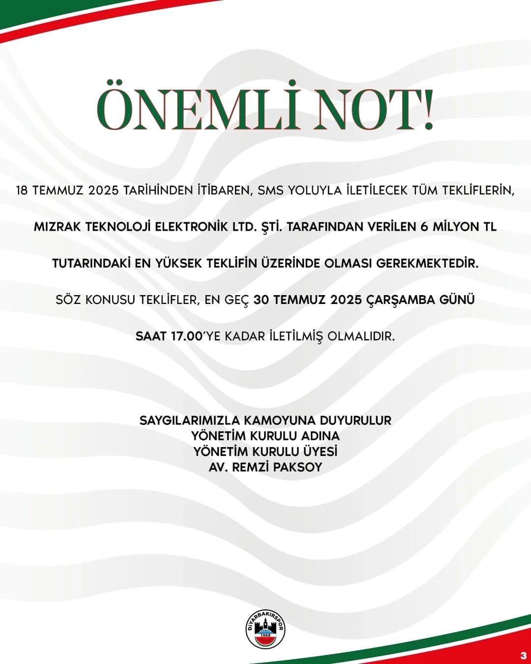 Açık artırıma katılanların isimlerini resmi sosyal medya hesaplarında paylaşan Diyarbakırspor, kampanyanın büyümesi için iş dünyasına çağrıda bulundu. Taraftarlar da iş insanlarından kampanyaya yoğun katılım göstermelerini istedi.