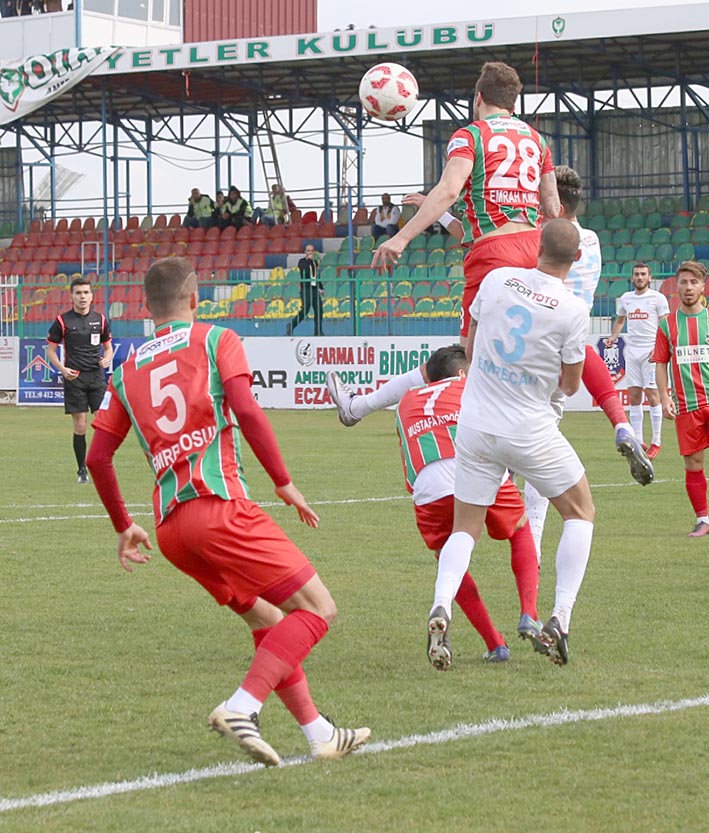 35. dakikada Diyarbekirspor beraberliği yakaladı. Mehmet'in soldan ortaladığı topu Emrah ceza alanında kafayla ağlara yolladı: 1-1