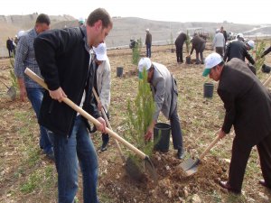 Konuşmaların ardından Bal ve beraberindekiler dikilen ağaçları suladı.