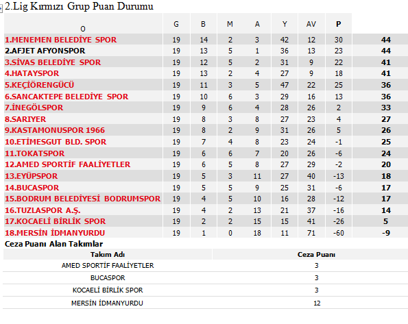 Son 61 deplasman maçının 41’inde uygulanan taraftar yasağını protesto etmek ve bu haksızlığa dikkat çekmek amacıyla geçen hafta gittiği Sivas’ta son anda karar alıp maça çıkmayan Amedspor,TFF’den gelen 3-0 hükmen ilan edilme ve 3 puan silme cezalarından sonra adeta kırmızı alarma geçti. 20 puana düşen Amedspor ile düşme hattında yer alan Tuzlaspor arasındaki puan farkı 6’ya indi. Mersin ve Kocaeli Birlikspor’un küme düşmesinin kesinleştiği 2.Lig Kırmızı Grup’ta Amedspor’un bundan sonraki hedefi ligde tutunmak olacak. Bunu başarması ise kolay görünmüyor. Kalan haftalarda her maç final havasında olacak.