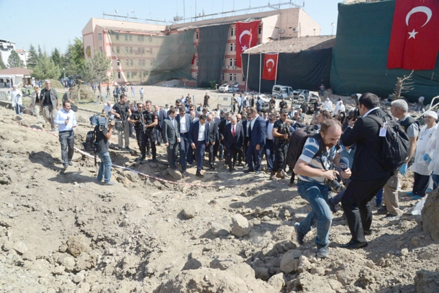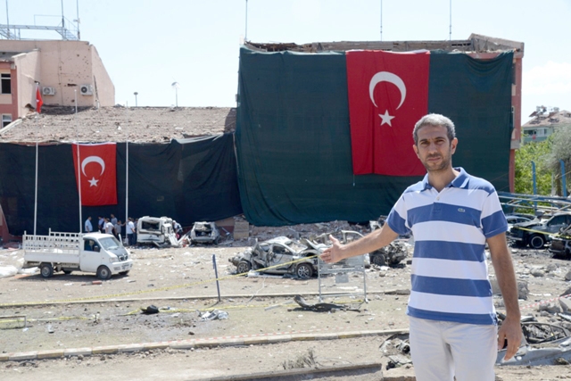 Bombalı araçla saldırının yapıldığı büyük hasar gören Emniyet Müdürlüğü binasına siyah bez ve üzerine Türk bayrağı asıldı. Binanın önünde toplanan vatandaşlar ise ’Şehitler ölmez, vatan bölünmez’ sloganları atarak PKK’yı kınadı.