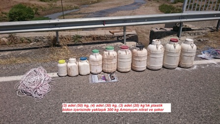 Bu tedbirler kapsamında icra edilen mayın ve el yapımı patlayıcı araması esnasında; Diyarbakır-Silvan kara yolu, Sur ilçesi Alabal Mahallesi Pamukçay Köprüsü'nün kontrolünde, köprünün altına ve köprü ayaklarına yerleştirilmiş vaziyette; köprü altındaki beton duvar kırılarak toprak zemine yerleştirilmiş vaziyette 10 adet değişik ebatlarda plastik bidon 3 adet 50 kg, 4 adet 30 kg, 3 adet 20 kg'lık plastik bidon içerisinde yaklaşık 300 kg Amonyum nitrat ve şeker karışımı. Toplam (20) adet birleştirilmiş pil bloğu, 500 metre kablo, bidonların içerisinde 300 kg Amonyum nitrat ve şeker karışımı ile hazırlanmış aktif halde EYP düzeneği tespit edilmiştir.
