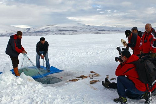Fotoğrafçılar Çıldır Gölü’nde balık tuttular