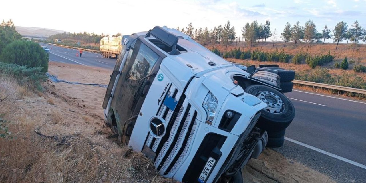 TIR kontrolden çıktı, devrildi; 1 ölü