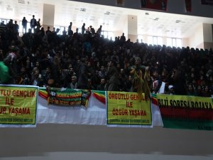 Kongrenin yapılacağı salona gelen bir grup genç, ellerinde Kürdistan bayrağı ve Irak KYB Başkanı ve Irak Cumhurbaşkanı Celal Talabani'nin posterlerini taşıyarak "Bijî serok Apo" sloganları attı.