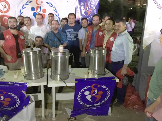 FETÖ'nün darbe girişimini protesto eden vatandaşlara destek veren Diyarbakır Gençlik Hizmetleri ve Spor İl Müdürlüğü çalışanları, demokrasi nöbetine katılan vatandaşlara su, çay ve yiyecek ikramında bulunuyor.