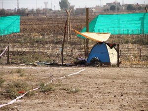 Mardin'in Nusaybin ile Rojava'nın Qamişlo kentleri arasındaki sınır hattında örülen "utanç duvarı"nın inşaatını mayınlı alanda protesto eden Nusaybin Belediye Başkanı Ayşe Gökkan'ın eylemi 8'inci gününde devam ediyor. Sağlık durumu giderek kötüye giden Gökkan'a bu sabah su verilmesine polisin izin vermemesi kısa süreli gerginliğe yol açtı. Yapılan görüşmeler sonucunda Gökkan'a suyun verilmesine izin veren polisin suyu götüren kişinin kimlik bilgilerini ve kaç adet su götürdüğüne dair tutanak tutması ise, dikkat çekti. Gökkan'ın insani ihtiyaçların karşılanması için hala seyyar tuvalet ve lavabonun kurulmadığı görüldü.