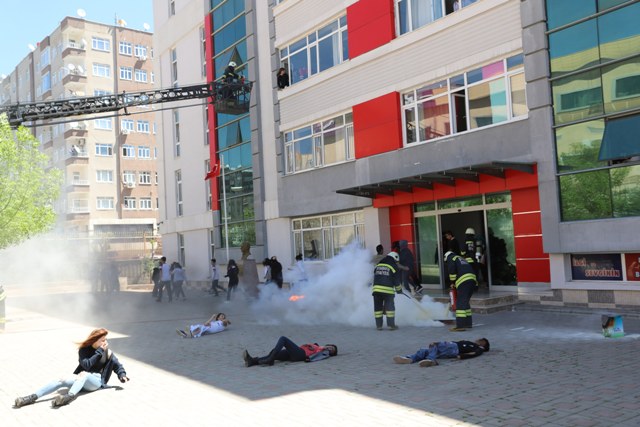 Okulda bir patlamanın canlandırıldığı tatbikatta, öğrencilerin bir kısmı itfaiyeci bir kısmı da sağlık çalışanı olarak görev aldı. Öğrenciler, canlandırılan olayda, “yangın söndürme, içeride mahsur kalanları itfaiye merdivenleri ile kurtarma ve yaralılara acil müdahale” konularında aldıkları eğitimi uygulamalı olarak sergiledi. Öğrencilerin yetersiz kaldığı durumlarda ise Büyükşehir Belediyesi İtfaiye ekipleri, müdahalelerde bulundu.