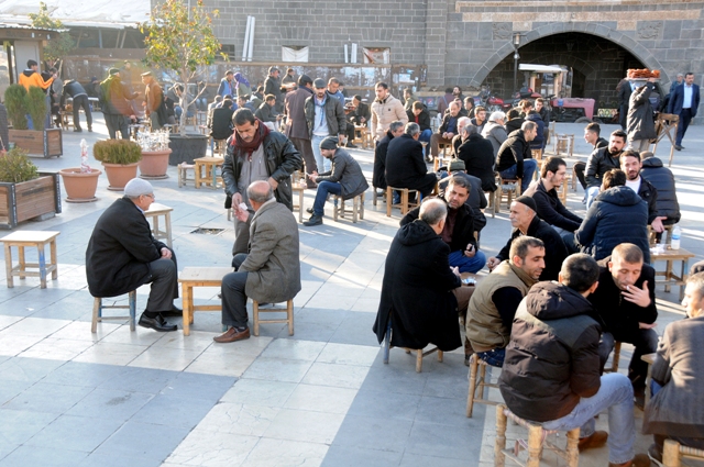 Hava sıcaklığının 4-5 dereceye düştüğü Diyarbakır’da kış kendisini hissettirirken, güneşli havayı fırsat bilen vatandaşlar kendisini dışarı atarak, güzel havanın tadını çıkartıyor. Bazı vatandaşlar tarihi Ulu cami önündeki açık alanda, bazıları da parklarda güneşin tadını çıkarıyor.