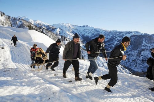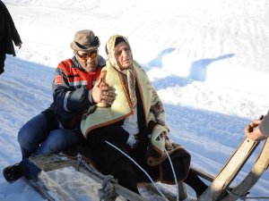 Benzer görüntülerine Diyarbakır’da alıştığımız hasta kadınların kar üzerinde kızakla taşınması sahnesi bu kez Artvinde çıktı karşımıza…