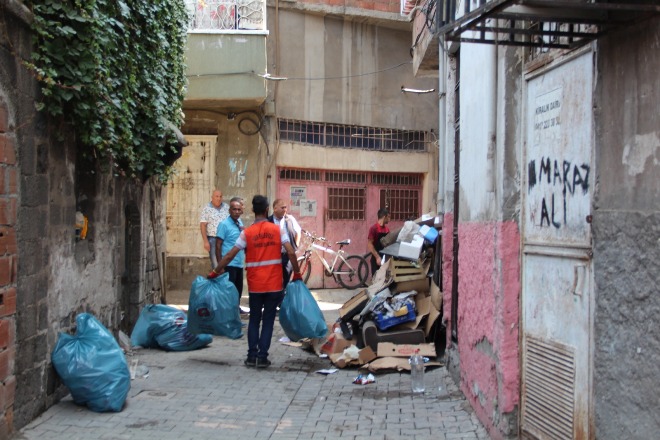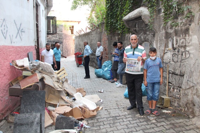 Tigris Haber’in “Suakar Çıkmazına kokudan girilemiyor” başlığıyla manşetine taşıdığı çöp sorunu, Sur Belediyesine bağlı temizlik görevlilerinin çalışmaları sonucu ortadan kalktı. Sur Belediyesi Zabıta ekiplerinin nezaretinde Suakar sokakta temizlik çalışması yapıldı. Sur Belediyesi temizlik işleri görevlilerinin yoğun çalışması sonucunda çöp kokusundan girilemeyen Suakar çıkmazında bulunan terkedilmiş iki evdeki çöpler kısa sürede temizlendi.