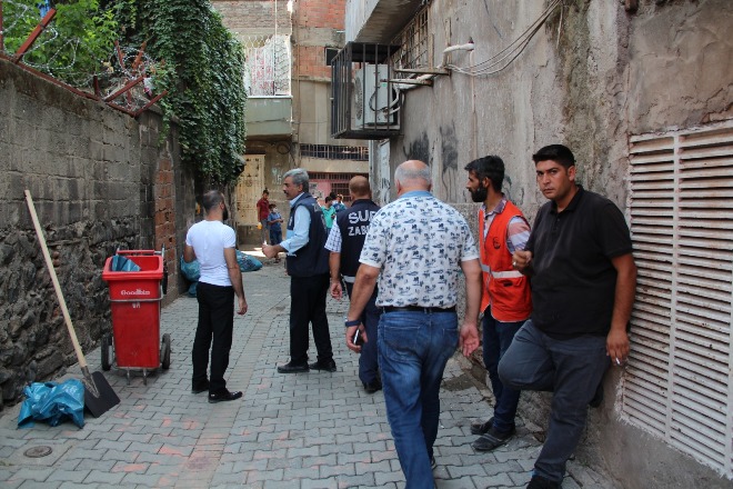 Suakar sokakta bulunan terkedilmiş iki evin avlusuna atılan çöplerden rahatsız olan sokak sakinlerinin çağrısı üzerine harekete geçen Sur Belediyesi, kokudan girilemeyen sokakta temizlik çalışması başlattı.