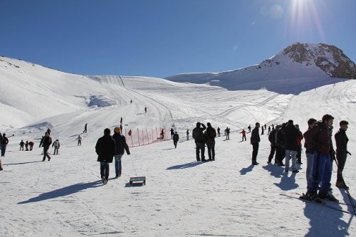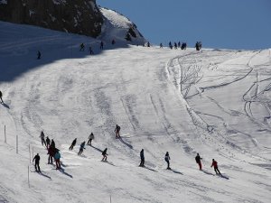 HAKKARİ - Hakkari'de kar seviyesinin yeterli seviyeye ulaştığı MergaBüte Kayak Merkezinde kayak sezonu açıldı. Kent merkezine 12 kilometre uzaklık mesafede bulunan ve 800 metre piste sahip olan 2 bin 800 rakımdaki MergaBüte Kayak Merkezi kayak severlerin akınına uğradı. Hafta sonunu ve güzel havayı fırsat bilen vatandaşlar, merkezde saatlerce kaymanın keyfini yaşadı. Kayak merkezinde bazı kadın ve çocukların kızaklarla kayması da ilginç görüntü oluşturdu. Gençlik Hizmetleri ve Spor İl Müdürü Reşit Güldal ile kayak sezonunun açılışını yapan Vali Yardımcısı Mustafa Temiz, kayak merkezinin Hakkari halkına hayırlı olması dileğinde bulundu.