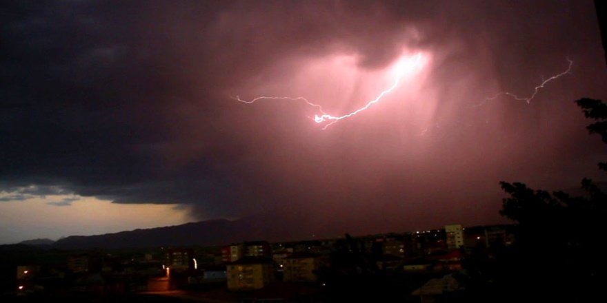 Hakkâri’nin Yüksekova ilçesinde akşam saatlerinde etkili olan sağanak yağış sırasında çakan şimşekler adeta görsel şölen sundu.