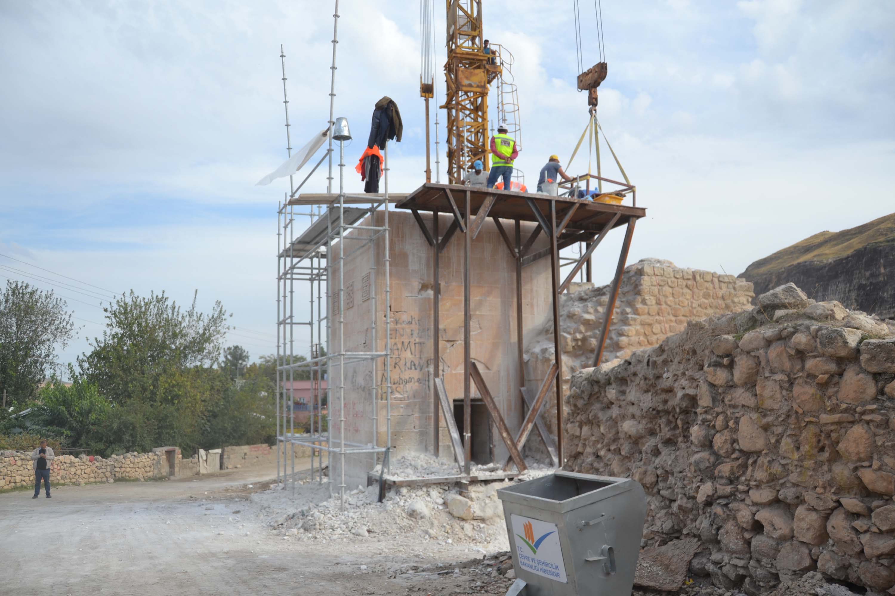 Hasankeyf'te iki cami minaresinin taşınma işleminde sona yaklaşıldı