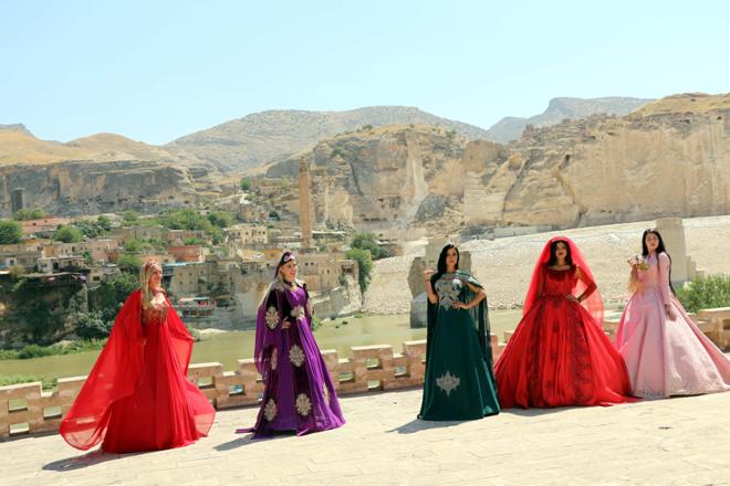 Diyarbakır'da yöresel kıyafet ve gelinlik üreten bir firma, Ilısu Baraj Göleti altında kalacak olan tarihi Hasankeyf ilçesinde yerli ve yabancı mankenler ile yöresel kıyafet defilesi düzenledi.